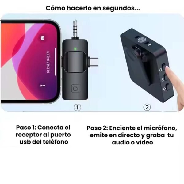 Ideal para grabaciones en movimiento, entrevistas o clases, y compatible con Android, iPhone (a partir de iphone 15), cámaras y PC.