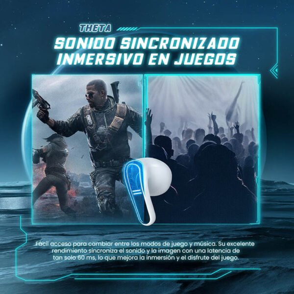 Gracias a su conexión Bluetooth 5.3 y su baja latencia (31-40 ms), los TG11 aseguran una sincronización perfecta entre imagen y sonido, siendo ideales para gaming. Además, su iluminación RGB dinámica aporta un estilo moderno y una atmósfera única en tus sesiones de juego.