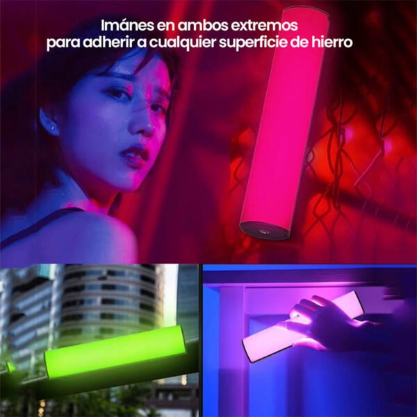 Iluminación profesional en formato compacto. Esta baliza RGB LED magnética premium ofrece colores completos RGB, temperatura ajustable de 2500K a 9000K, batería recargable de larga duración y base con trípode incluido, ideal para fotografía, video, streaming o ambientación creativa.