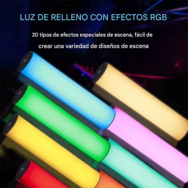 Su sistema RGB completo permite seleccionar millones de colores, mientras que el modo CCT ajustable entre 2500K y 9000K ofrece desde luz cálida ambiental hasta luz fría profesional. También incorpora múltiples efectos especiales, perfectos para recrear ambientes cinematográficos o creativos.