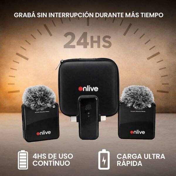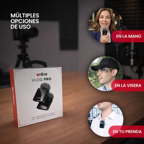 El ONLIVE VLOG PRO es un kit de micrófonos corbateros inalámbricos diseñado para creadores de contenido, entrevistas y grabaciones profesionales. Incluye 2 micrófonos + receptor, cancelación de ruido, transmisión estable 2.4G y compatibilidad con iPhone, Android y cámaras profesionales, todo en un formato compacto, liviano y fácil de usar.