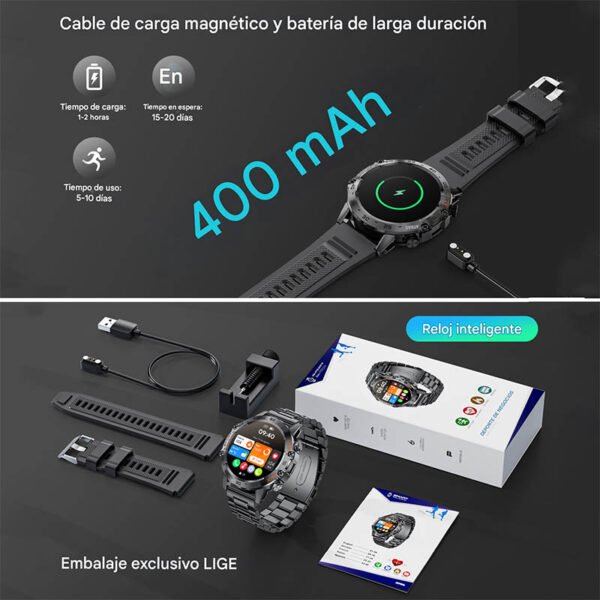 El Smartwatch LIGE K52 es un reloj inteligente diseñado para quienes buscan tecnología, estilo y funcionalidad en un solo dispositivo. Su diseño robusto de inspiración deportiva combina caja metálica premium con pantalla circular de alta definición, ofreciendo una experiencia visual moderna y elegante.
